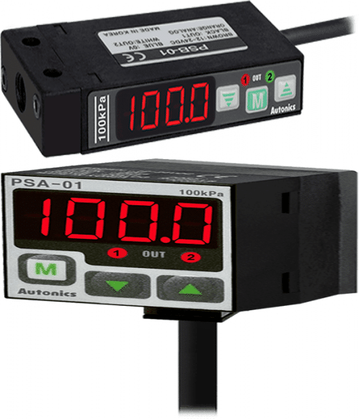 Cảm biến áp suất Autonics PSA/PSB có mạch bảo vệ quá dòng và bảo vệ nối ngược cực tính nguồn, có thể chuyển đổi đơn vị áp suất. Sensor PSA/PSB Autonics có độ phân giải 1/1000, kích thước 30 x 30, nguồn cấp 12-24VDC ±10%, đạt tiêu chuẩn CE